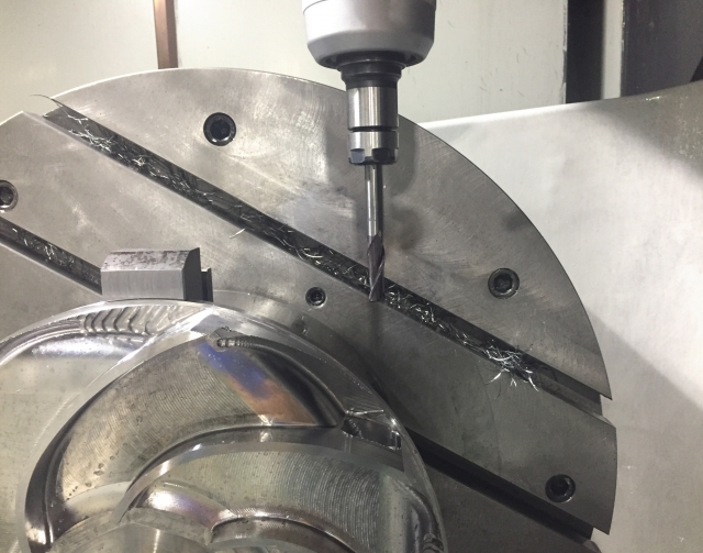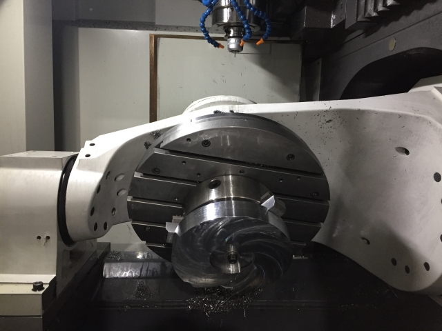 インペラは、湾曲した複数のブレードが一体となった部品で、同時5軸加工の能力を象徴する代表的な加工例です。